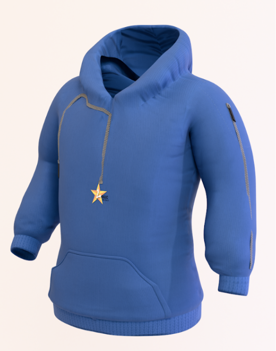 The Essential Blue Hoodie is crafted for everyday comfort with a sleek, practical design. Made from soft, breathable fabric, it keeps you warm without feeling heavy. A hidden zipper on the sleeve adds both convenience and a unique detail — perfect for storing small essentials securely while on the go. Featuring ribbed cuffs, a roomy front pocket, and a relaxed fit, this hoodie blends casual style with smart functionality. Ideal for both work and leisure.